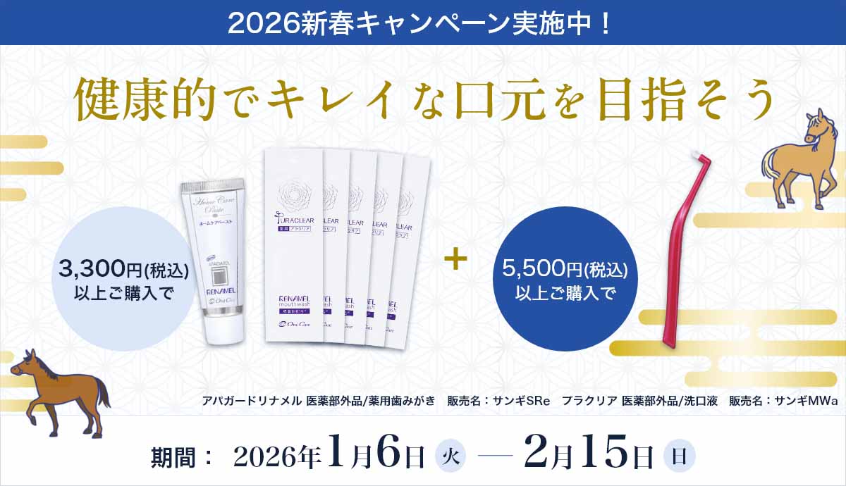 | あけましておめでとうございます。 本年もオーラルヘルスナビをどうぞよろしくお願いいたします。 さっそくですが、2026年はお口のケアをアップデートしませんか? オーラルヘルスナビでは、本日より新春キャンペーンをスタート。 3,300円(税込)以上のご購入で、「エナメル質ケアセット」をプレゼントします。 エナメル質ケアにトライして、“なめらかさの違い”をぜひ体感してみてください! ▼3,300円(税込)以上ご購入でプレゼント